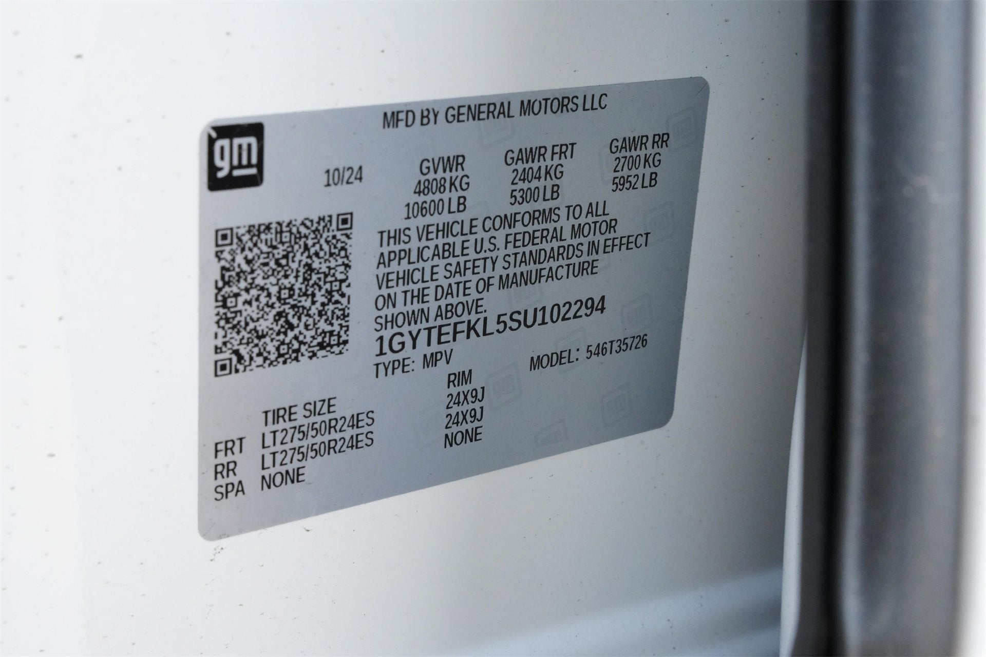 - Tires, LT275/50R24, all-season