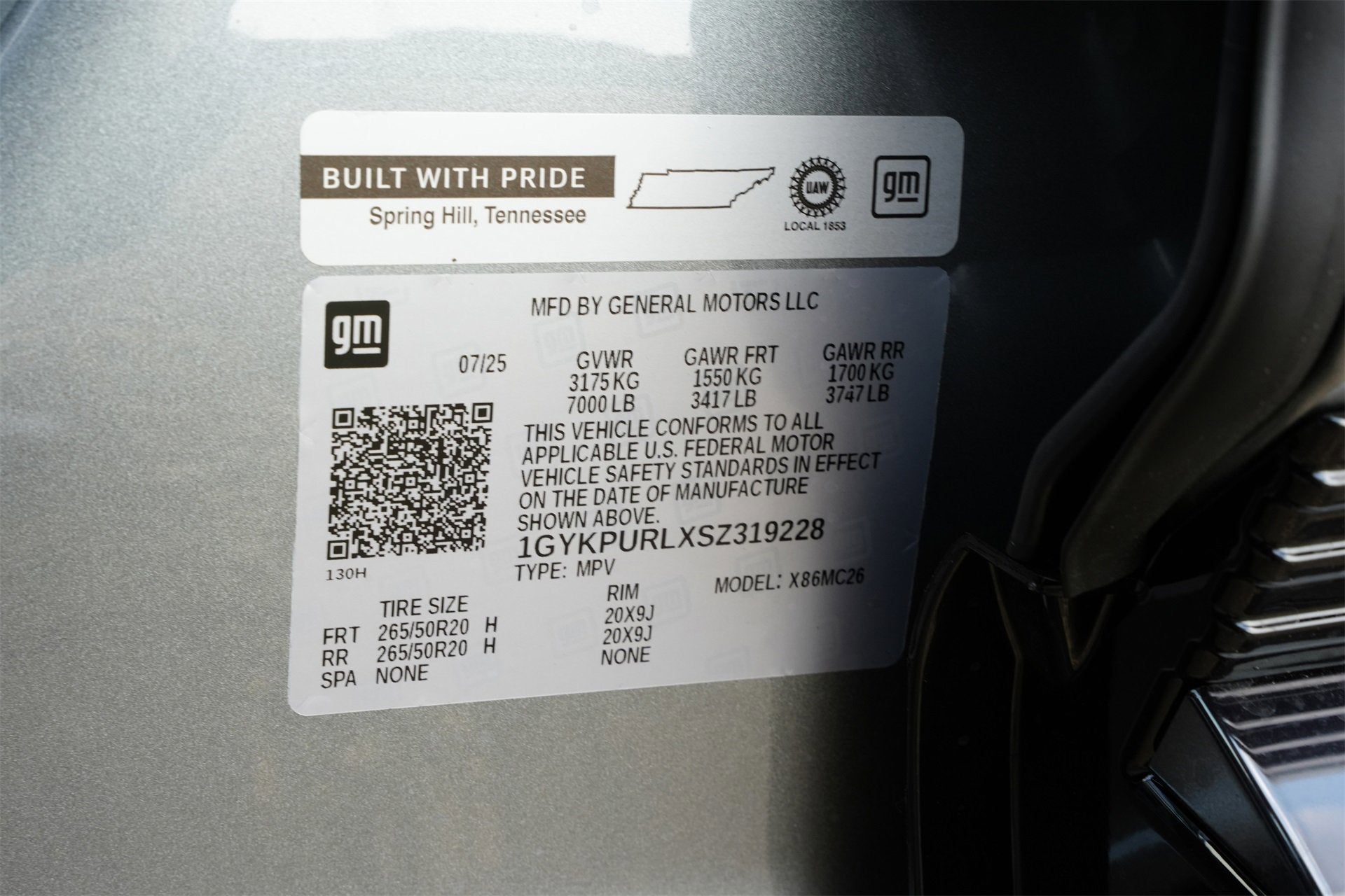 This 2025 Cadillac LYRIQ Sport is loaded with the following Factory Options:Floor Liner Package (Contoured Floor Liners and Integrated Cargo Liner), Preferred Equipment Group 1SF, 4-Wheel Disc Brakes, 6-Way Power Front Passenger Seat Adjuster, 7 Speakers, 7-Speaker Audio System Feature, 8-Way Power Driver Seat Adjuster, ABS brakes, Air Conditioning, Alloy wheels, AM/FM radio: SiriusXM with 360L, Apple CarPlay/Android Auto, Auto High-beam Headlights, Auto-dimming door mirrors, Auto-dimming Rear-View mirror, Automatic temperature control, Black Roof, Brake assist, Bumpers: body-color, Compass, Delay-off headlights, Driver 4-Way Power Lumbar Seat Adjustment, Driver and Front Passenger Heated Seats, Driver door bin, Driver vanity mirror, Dual front impact airbags, Dual front side impact airbags, Dual Motor AWD, Electronic Stability Control, Emergency communication system: OnStar and Cadillac connected services capable, Four wheel independent suspension, Front anti-roll bar, Front Bucket Seats, Front Center Armrest, Front dual zone A/C, Front License Plate Bracket, Front Passenger 4-Way Power Lumbar Seat Adjustment, Front Passenger Seat Memory, Front reading lights, Fully automatic headlights, Garage door transmitter, GM PowerUp 2 Charger, Google Built-in, Heated door mirrors, Heated front seats, Heated steering wheel, Hitch Guidance with Trailering Assist Guideline, Hitch View, Illuminated entry, Inteluxe Seat Trim, Knee airbag, Leather steering wheel, Low tire pressure warning, Memory seat, Navigation system: Google Automotive Services Capable, Occupant sensing airbag, Outside temperature display, Overhead airbag, Overhead console, Panic alarm, Passenger door bin, Passenger vanity mirror, Power door mirrors, Power driver seat, Power Liftgate, Power passenger seat, Power steering, Power windows, Premium Suspension, Radio data system, Rain sensing wipers, Rear anti-roll bar, Rear reading lights, Rear seat center armrest, Rear window defroster, Remote keyless entry, Security system, SiriusXM with 360L Trial Subscription, Speed control, Speed-sensing steering, Split folding rear seat, Spoiler, Steering wheel memory, Steering wheel mounted audio controls, Telescoping steering wheel, Tilt steering wheel, Traction control, Trip computer, Turn signal indicator mirrors, Variably intermittent wipers, Wheels: 20 Dynamic 12-Spoke Alloy, and Wireless Apple CarPlay/Wireless Android Auto.