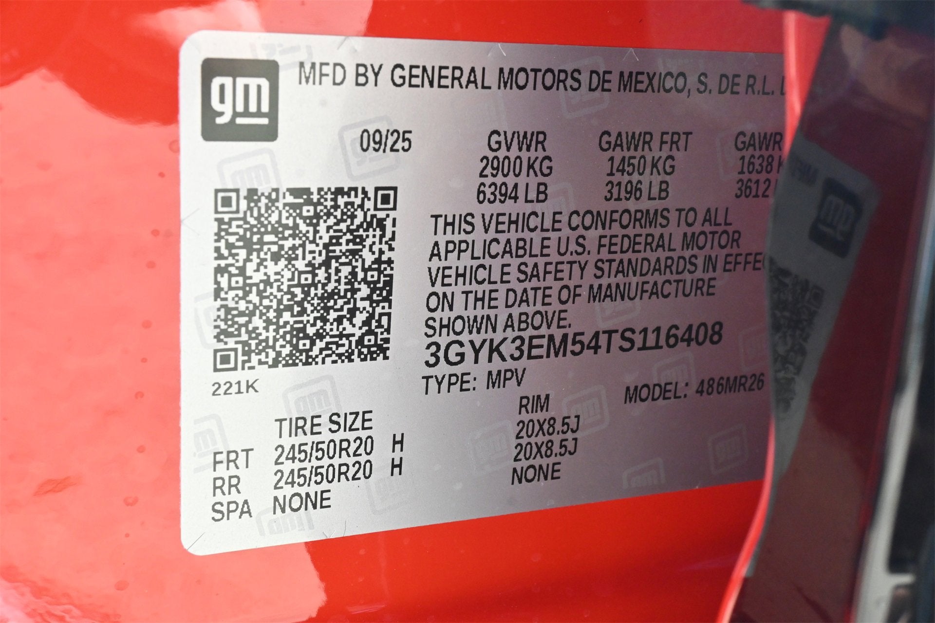 - Tires, 245/50R20 all-season, self-sealing (STD)