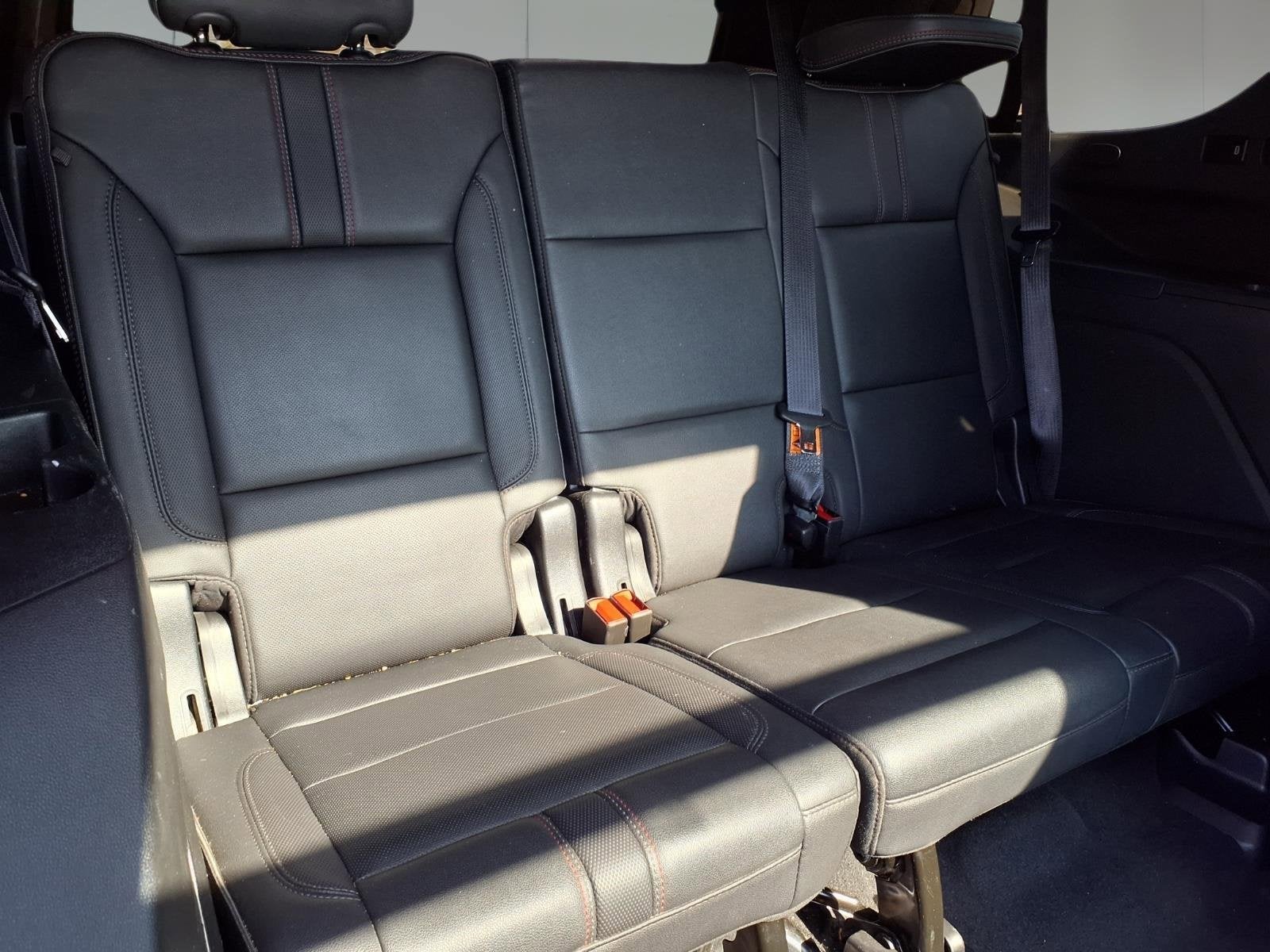 THIS VEHICLE INCLUDES THE FOLLOWING FEATURES AND OPTIONS : Advanced Trailering Package (Hitch Guidance w/Hitch View, Integrated Trailer Brake Controller, and Smart Trailer Integration Indicator), Driver Alert Package (Lane Change Alert w/Side Blind Zone Alert and Rear Cross Traffic Alert), License Plate Front Mounting Package, Luxury Package (2nd Row Pwr Release 60/40 Split-Folding Bench Seat, 3rd Row 60/40 Power-Folding Split-Bench Seat, HD Surround Vision, Heated 2nd Row Outboard Seats, Heated Steering Wheel, Memory Settings, Outside Heated Power-Adjustable Mirrors, Power Tilt & Telescopic Steering Column, and Rear Pedestrian Alert), Max Trailering Package (2-Speed Active Electronic AutoTrac Transfer Case and Extra Capacity Cooling System), Preferred Equipment Group 1SP (1st & 2nd Row Color-Keyed Carpeted Floor Mats, Auto-Dimming Inside Rear-View Mirror, Automatic Stop/Start, Bose 9-Speaker Stereo Audio System Feature, Bright Front & Rear Door Sill Plates, Color-Keyed Carpeting Floor Covering, Driver & Front Outboard Passenger Airbags, Enhanced Driver Information Center, Floor Console w/Storage Area, Hands-Free Rear Power Programmable Liftgate, Infotainment Display, Leather-Wrapped Steering Wheel, LED Daytime Running Lamps, Memory Settings for Driver, Remote Start, SiriusXM Radio w/360L, Start/Stop System Disable Button, Universal Home Remote, and Wireless Charging), 4WD, Jet Black/Victory Red Leather, 10-Way Power Driver & Passenger Seat Adjusters, 3.23 Rear Axle Ratio, 3rd row seats: split-bench, 4-Wheel Disc Brakes, 9 Speakers, ABS brakes, Air Conditioning, Alloy wheels, AM/FM radio: SiriusXM with 360L, Apple CarPlay/Android Auto, Auto High-beam Headlights, Auto-dimming Rear-View mirror, Automatic temperature control, Brake assist, Bumpers: body-color, Compass, Delay-off headlights, Driver door bin, Driver vanity mirror, Dual front impact airbags, Dual front side impact airbags, Dual-Pane Power Panoramic Sunroof, Electronic Stability Control, Emergency communication system: OnStar and Chevrolet connected services capable, Four wheel independent suspension, Front anti-roll bar, Front Bucket Seats, Front Center Armrest, Front dual zone A/C, Front High-Back Reclining Bucket Seats, Front reading lights, Fully automatic headlights, Garage door transmitter, Heated door mirrors, Heated Driver & Front Passenger Seats, Heated front seats, Illuminated entry, Leather steering wheel, Low tire pressure warning, Memory seat, Navigation System, Not Equipped w/Heated Steering Wheel (DISC), Not Equipped w/Steering Column Lock, Occupant sensing airbag, Outside temperature display, Overhead airbag, Overhead console, Panic alarm, Passenger door bin, Passenger vanity mirror, Perforated Leather Seat Trim, Power door mirrors, Power driver seat, Power Liftgate, Power passenger seat, Power Release 2nd Row Bucket Seats, Power steering, Power windows, Premium audio system: Chevrolet Infotainment System 3, Premium Smooth Ride Suspension, Radio: Chevrolet Infotainment 3 Premium System, Rain sensing wipers, Rear air conditioning, Rear anti-roll bar, Rear reading lights, Rear seat center armrest, Rear window defroster, Rear window wiper, Remote keyless entry, Roof rack: rails only, Security system, Set of 4 Wheel Locks (LPO), Speed control, Speed-sensing steering, Split folding rear seat, Spoiler, Steering wheel mounted audio controls, Tachometer, Telescoping steering wheel, Tilt steering wheel, Traction control, Trip computer, Variably intermittent wipers, Voltmeter, and Wheels: 22 x 9 Bright Machined. Recent Arrival!